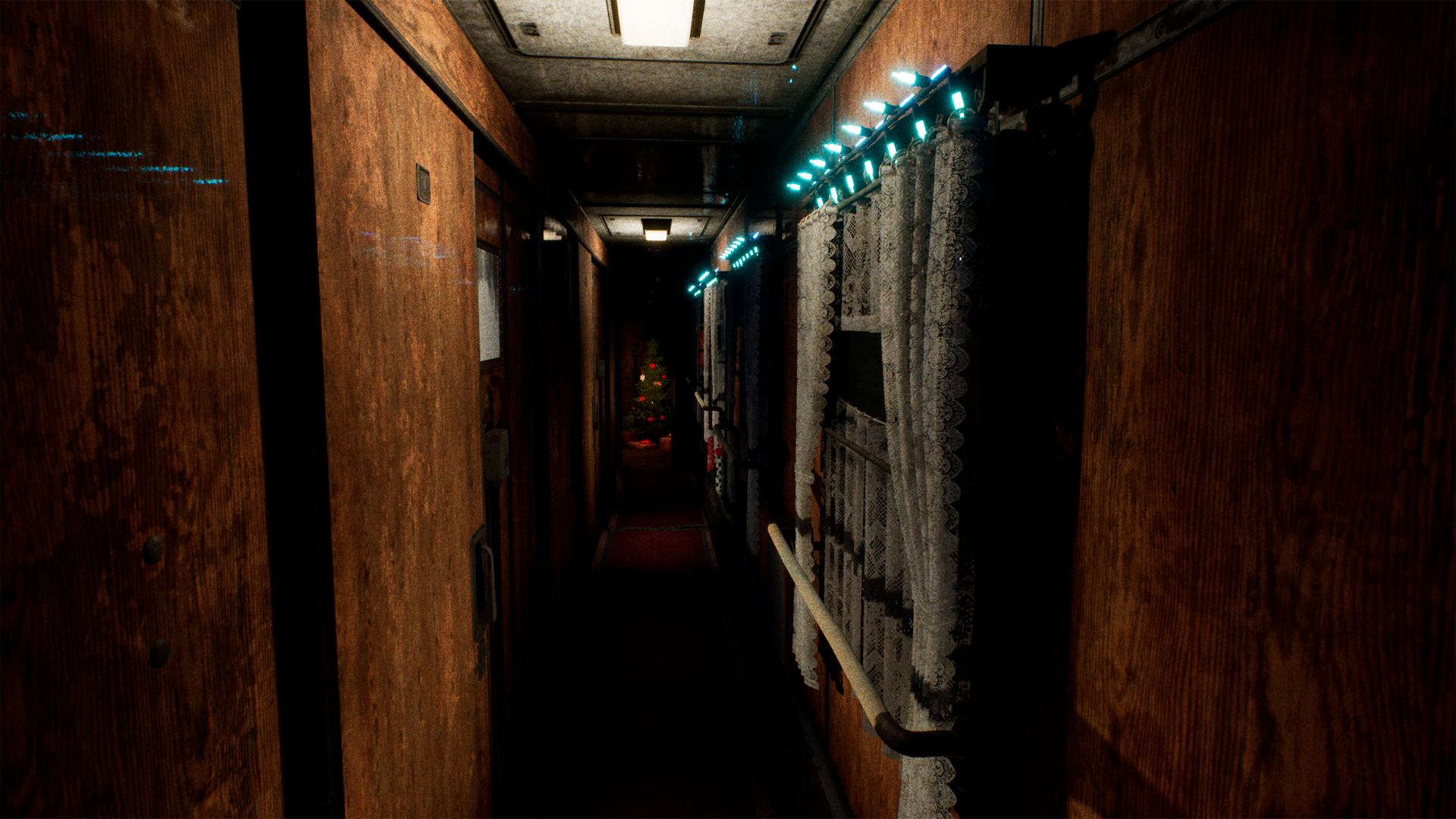 You play as an ordinary passenger who wakes up in a compartment: tea, string lights, New Year’s radio. At some point, something happens- and you’re left alone.